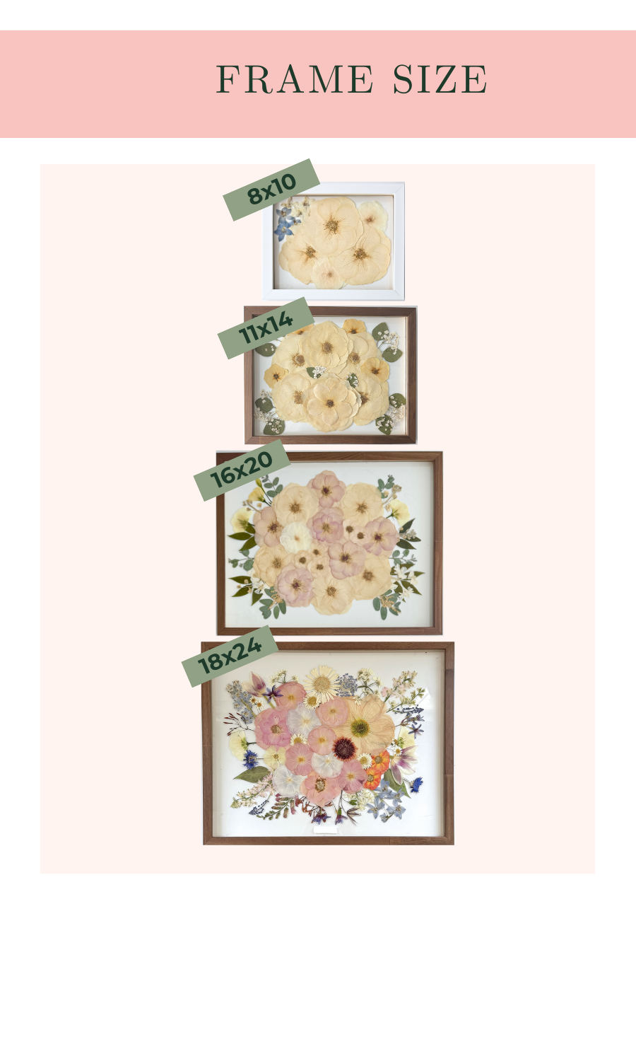 - After ordering, you will receive a detailed form to fill out so that we can get to know more about you, your wedding/event, your frame choices, and your style so we can create a personalized design that you love